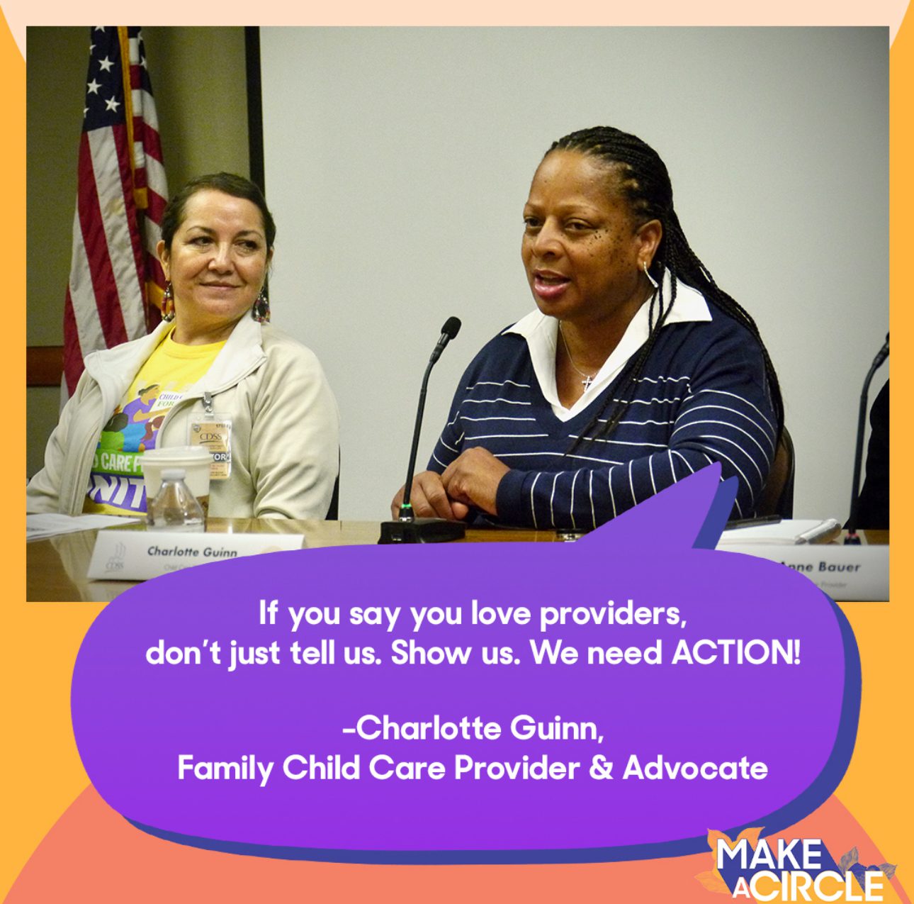 After Laterria screened the film to a cohort of home-based providers in North Carolina, she noted the silence that stretched around the room. Then, a collective exhale of recognition. The providers she works with through MDC’s leadership development program “are the type of people who eat their plate last at home,” she says. Seeing other providers on screen fully own their role as essential community leaders and agents of change was “an a-ha moment” for those in the room.